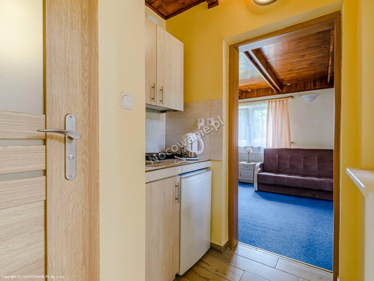 Gotowanie potraw nie przysparza trudności, dzięki dobrze wyposażonemu aneksowi kuchennemu, w którym goście odnajdą lodówkę, komplet naczyń i kuchenkę. Łazienka jest czysta i obszerna. Z kolei na tarasie można rozłożyć meble ogrodowe, stół, a nawet wydać małe przyjęcie.